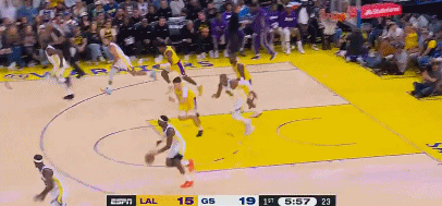 霍福德瞅准时机,妙传弯道漂移切入的库里,一个电线杆过弯拉杆反篮打成2+1